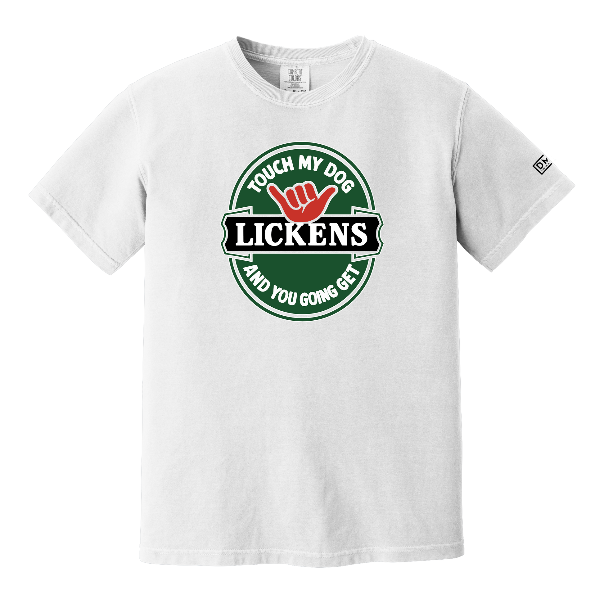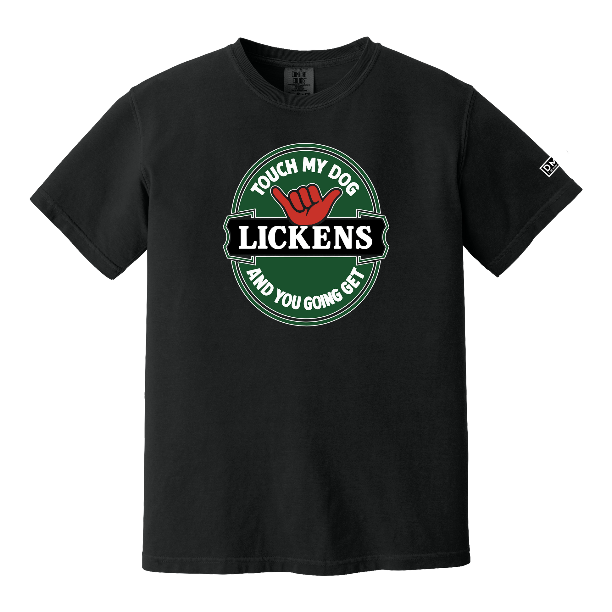 Lickens | lick-ens /noun/ - a thorough beating, a spanking, or being taught a harsh lesson, often physical punishment. IN OTHER WORDS: Don't f*ck with my dog or you're asking for a fight. You're welcome.